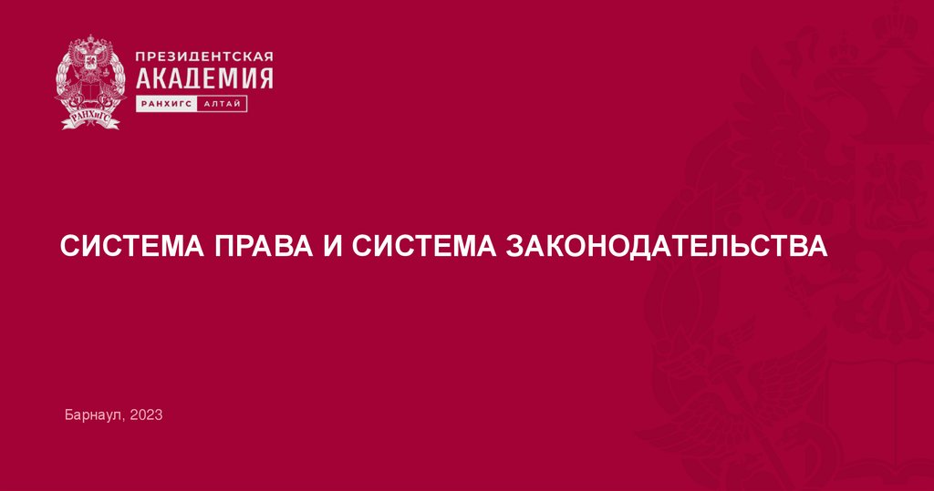 СИСТЕМА ПРАВА И СИСТЕМА ЗАКОНОДАТЕЛЬСТВАБарнаул, 2023