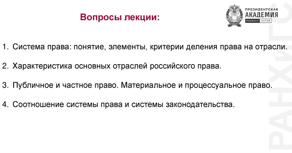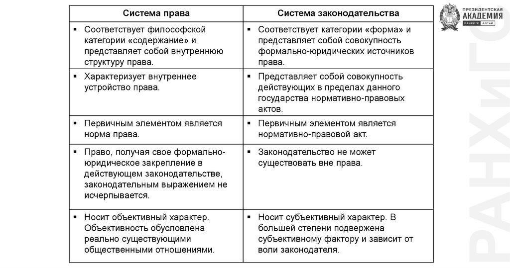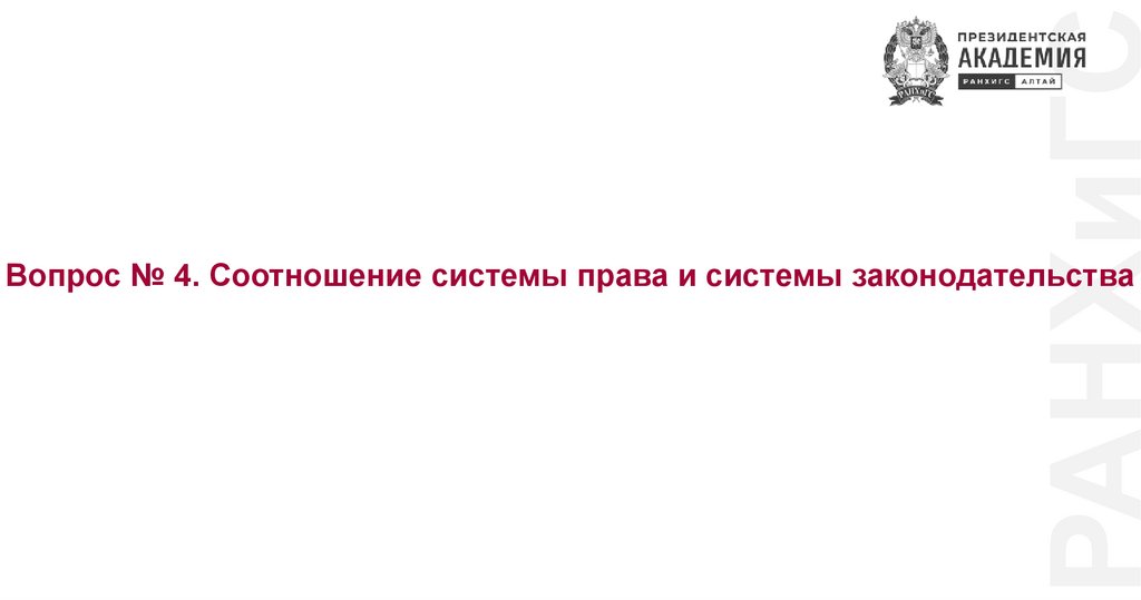 РАНХиГСВопрос № 4. Соотношение системы права и системы законодательства