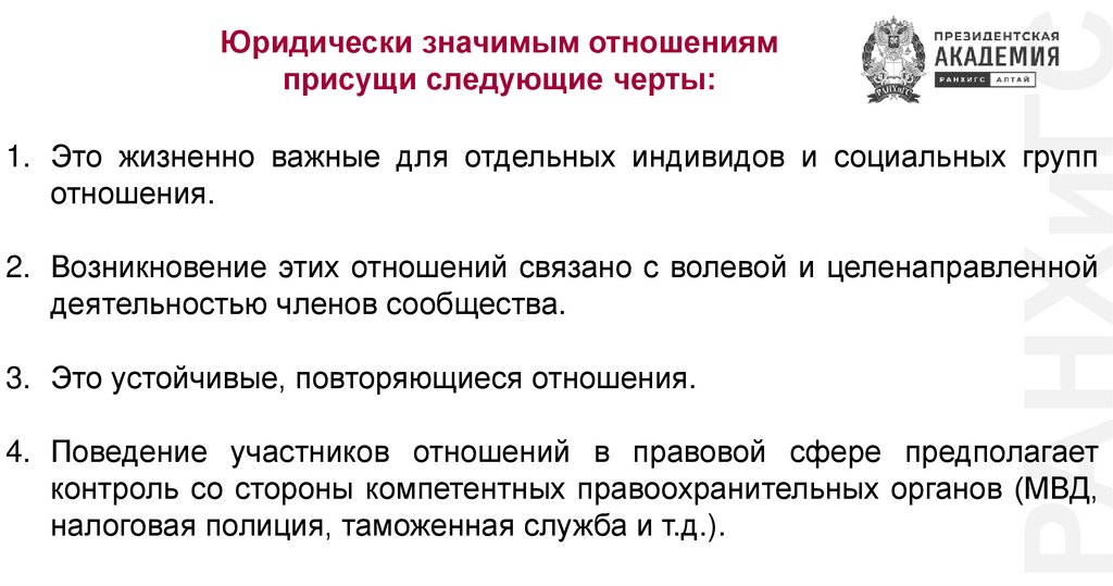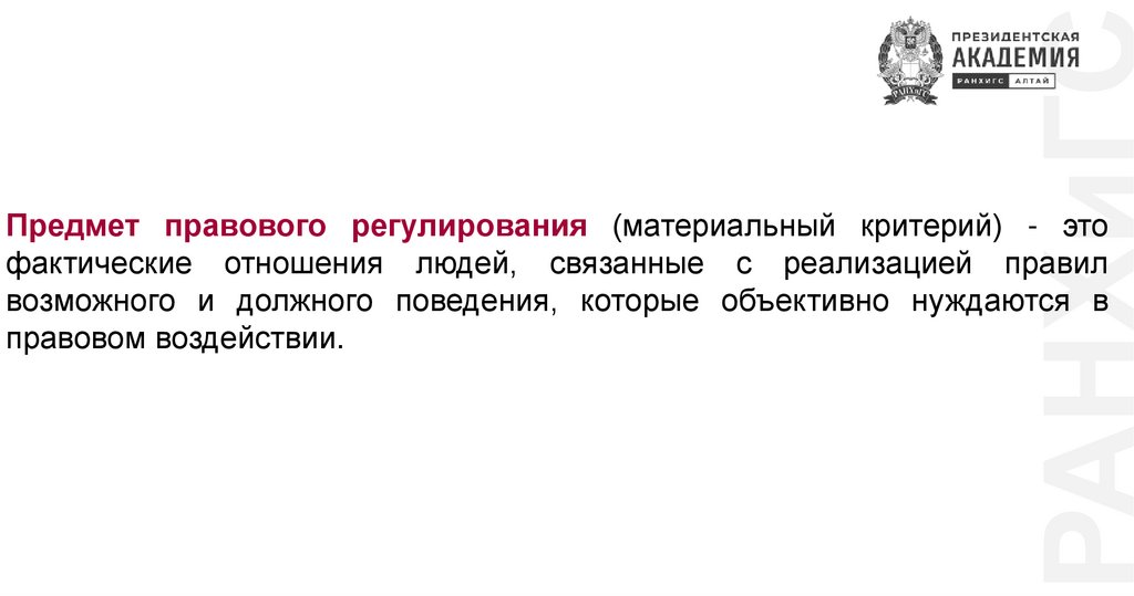 РАНХиГСПредмет правового регулирования (материальный критерий) - это