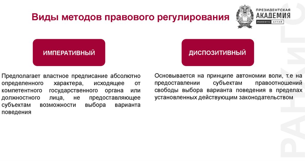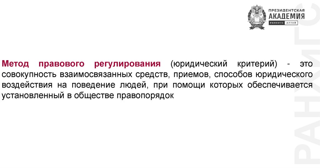 РАНХиГСМетод правового регулирования (юридический критерий) - это