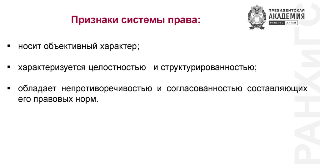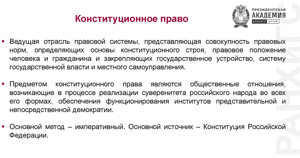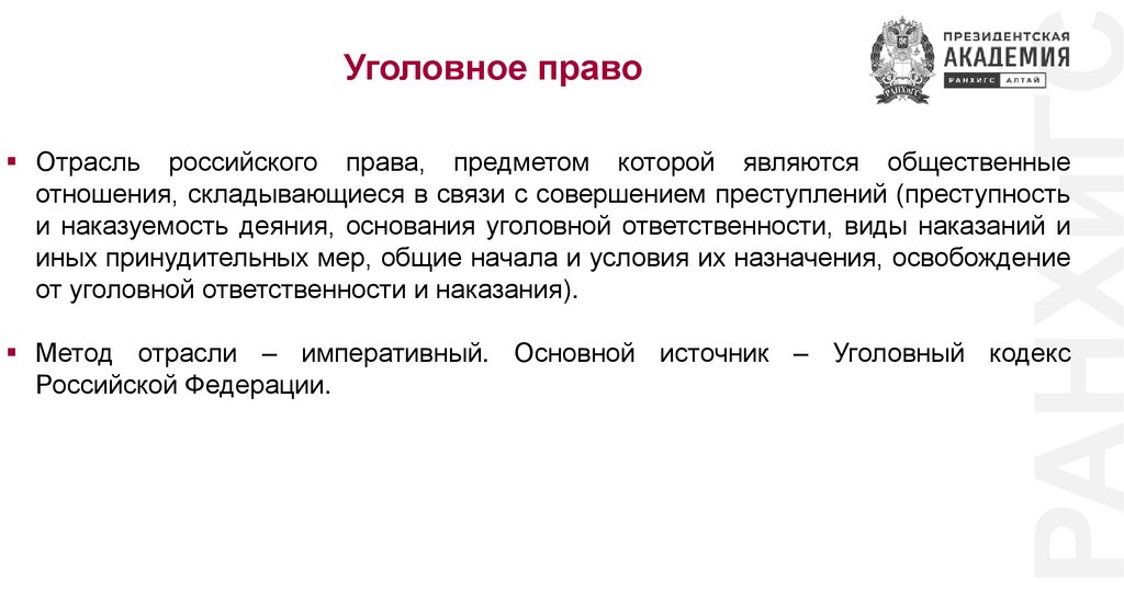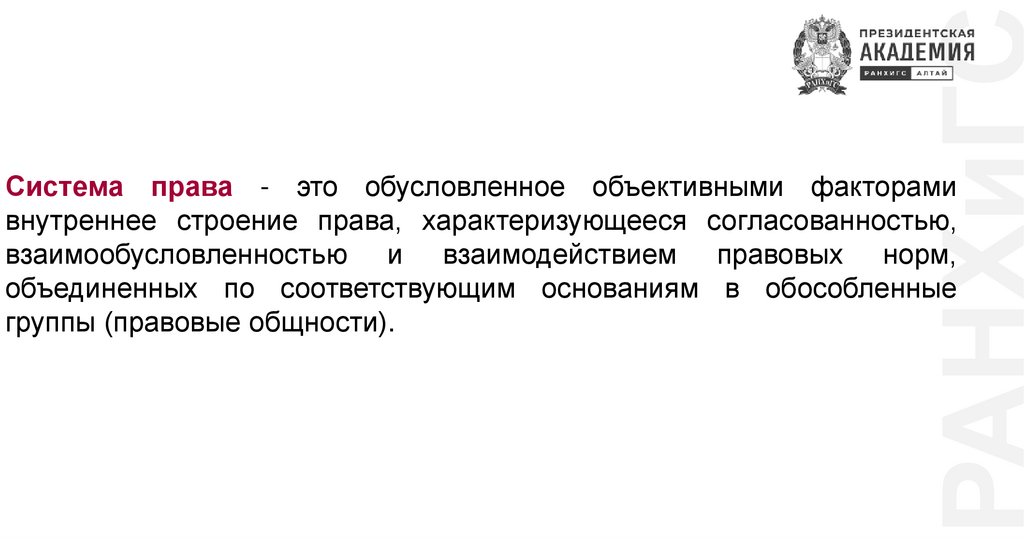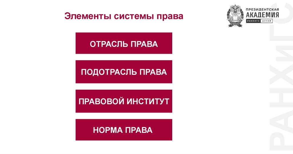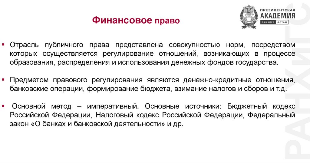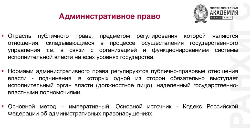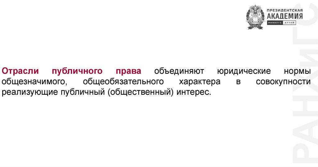 РАНХиГСОтрасли публичного права объединяют юридические нормы