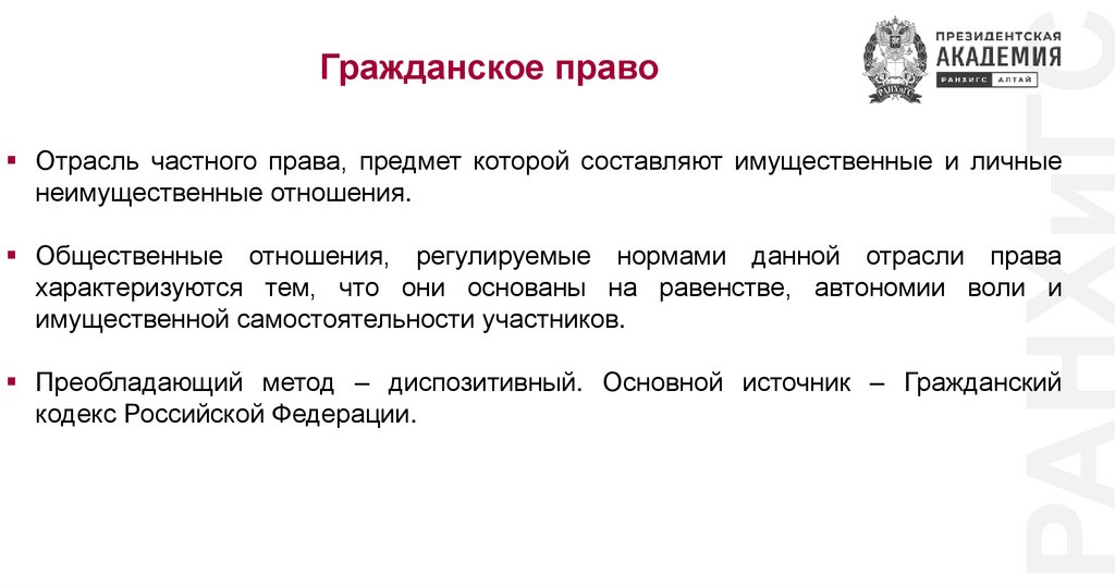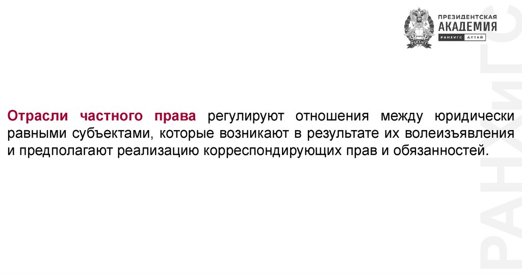 РАНХиГСОтрасли частного права регулируют отношения между юридически