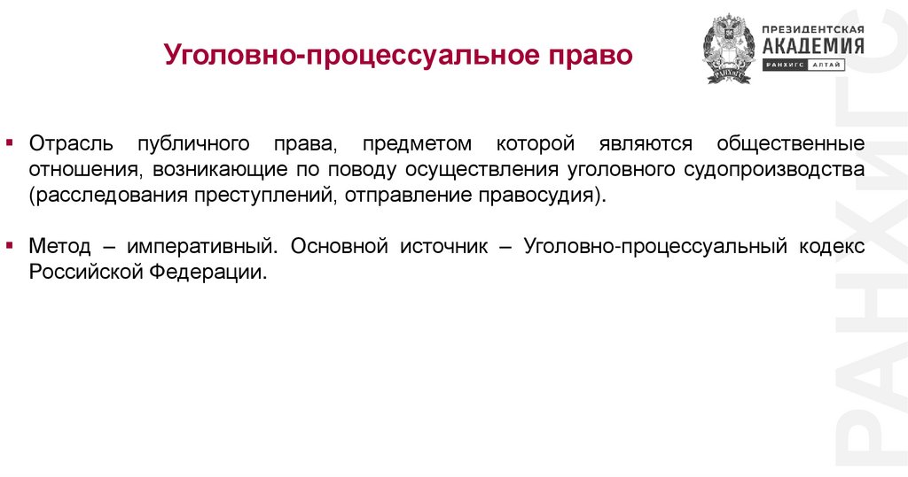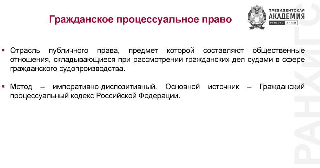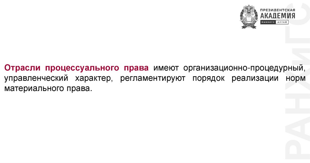 РАНХиГСОтрасли процессуального права имеют организационно-процедурный,