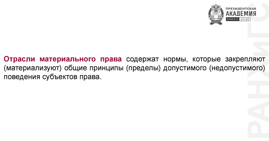 РАНХиГСОтрасли материального права содержат нормы, которые закрепляют