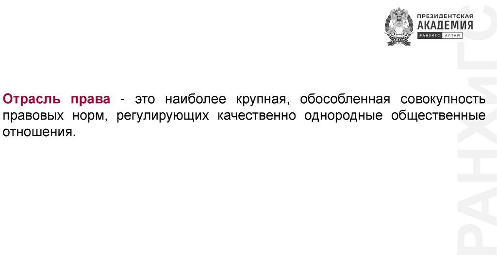 РАНХиГСОтрасль права - это наиболее крупная, обособленная совокупность