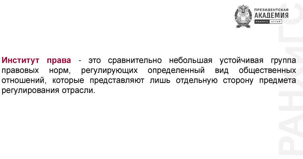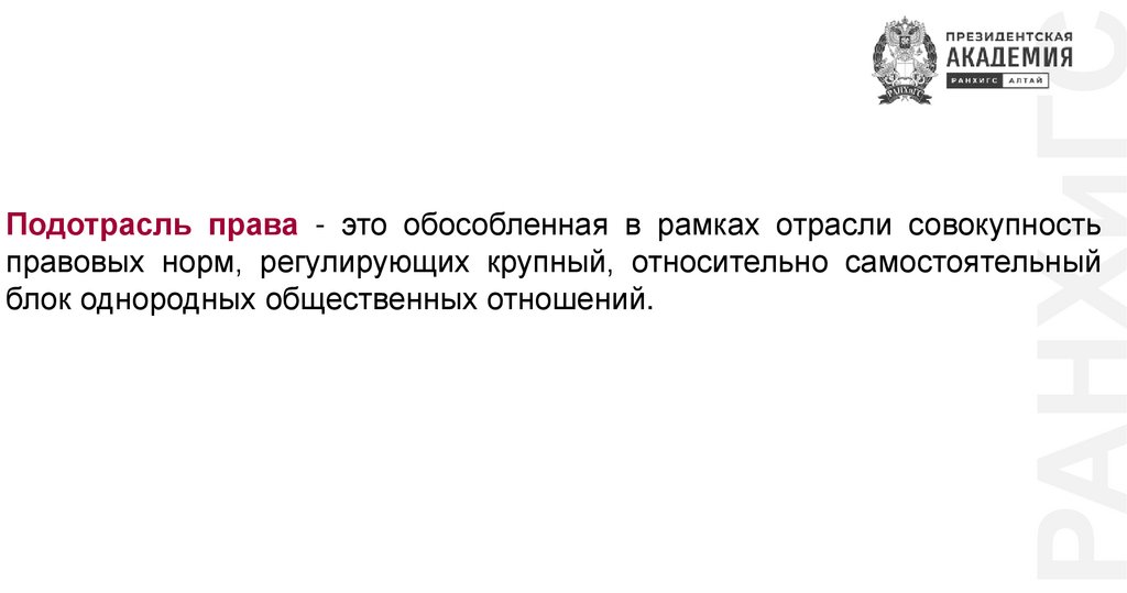 РАНХиГСПодотрасль права - это обособленная в рамках отрасли совокупность