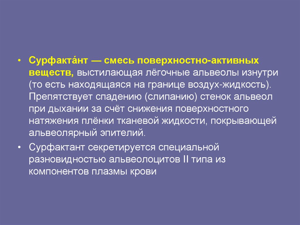 • Лёгочная ткань играет важную роль в процессах: синтез