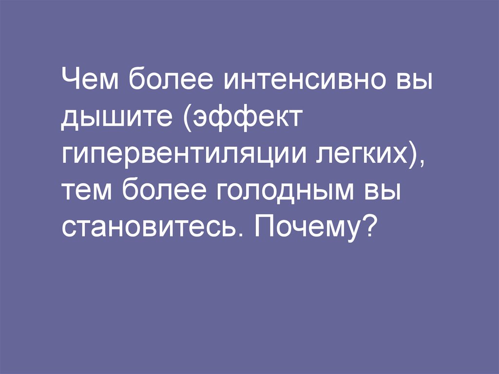 5. Чем более интенсивно вы дышите (эффект гипервентиляциилегких), тем более голодным вы становитесь, т.к. глубокое и