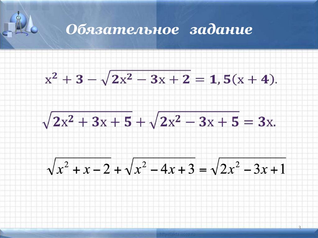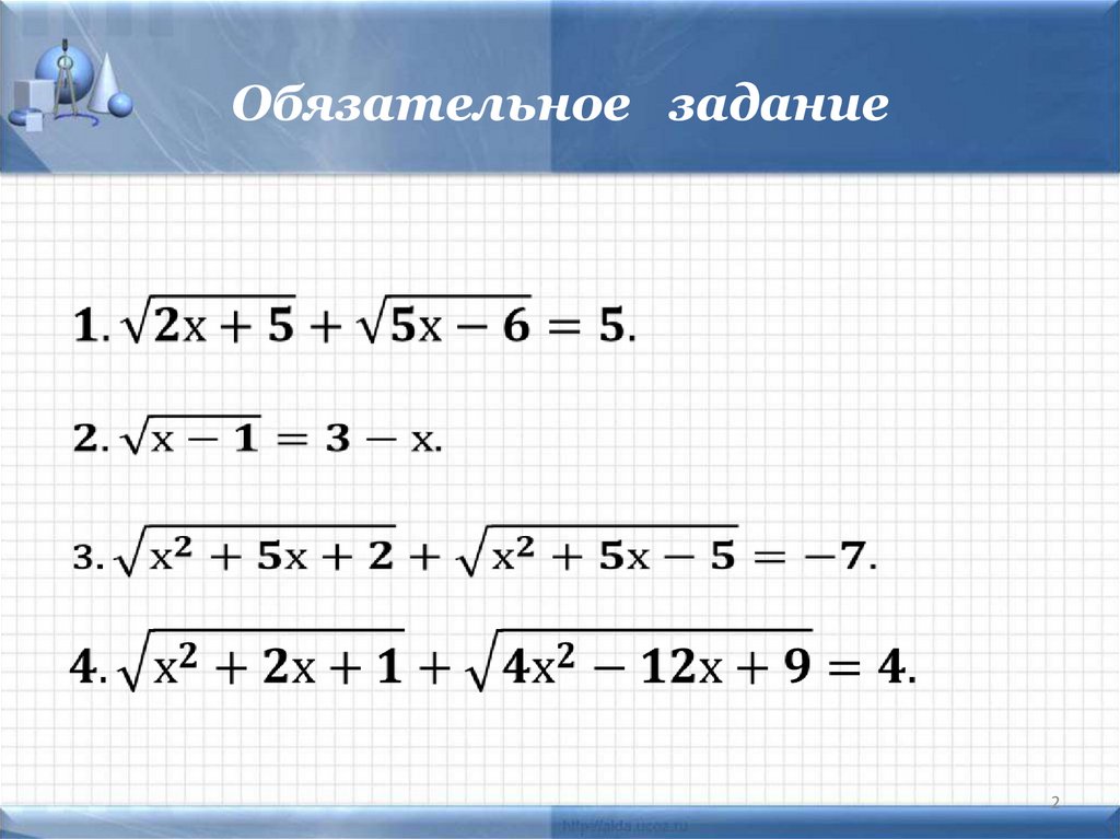 ИРРАЦИОНАЛЬНЫЕ УРАВНЕНИЯ