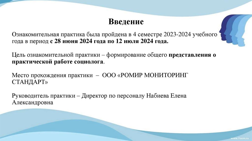 ВведениеОзнакомительная практика была пройдена в 4 семестре 2023-2024 учебного
