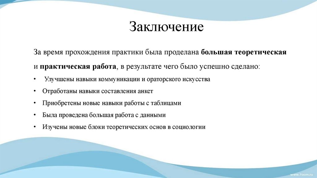 ЗаключениеЗа время прохождения практики была проделана большая теоретическая