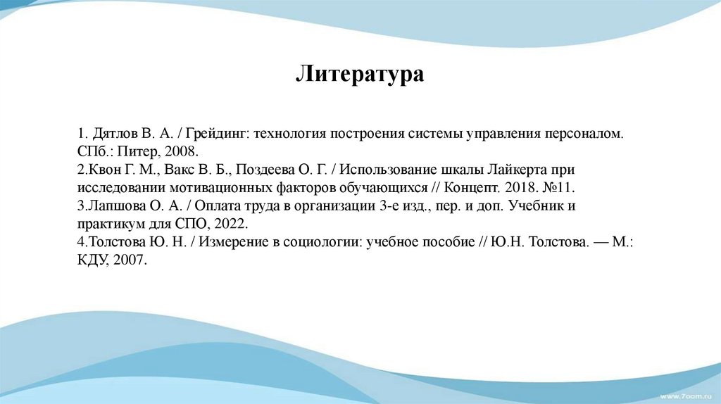 Литература1. Дятлов В. А. / Грейдинг: технология построения системы управления персоналом.