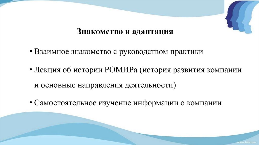 Знакомство и адаптация• Взаимное знакомство с руководством практики
