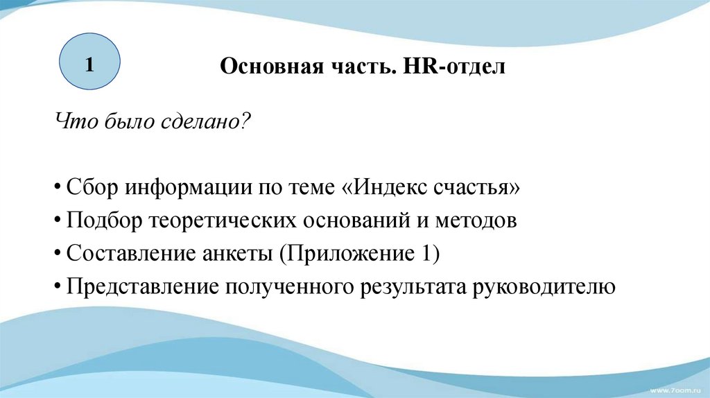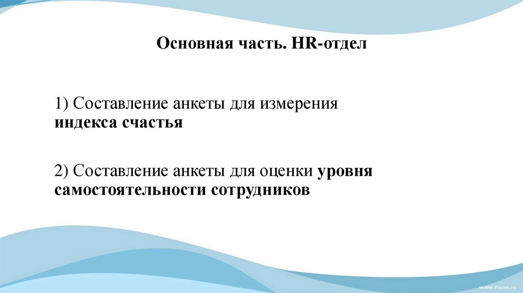 Основная часть. HR-отдел1) Составление анкеты для измерения