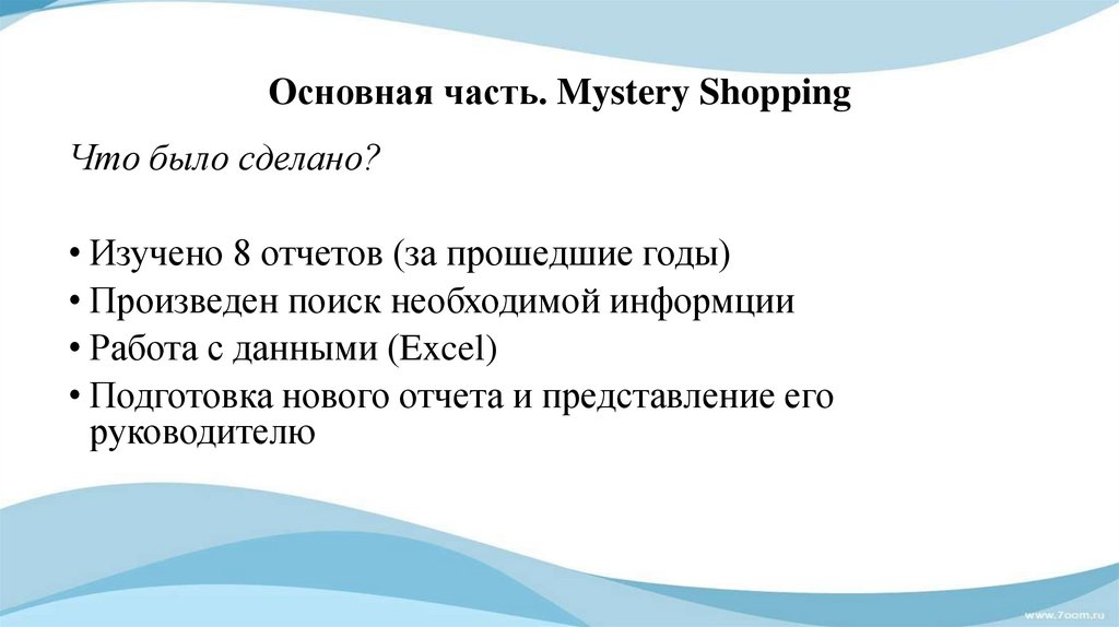 • Mystery Shopping: работа с большим объёмом данных, представление