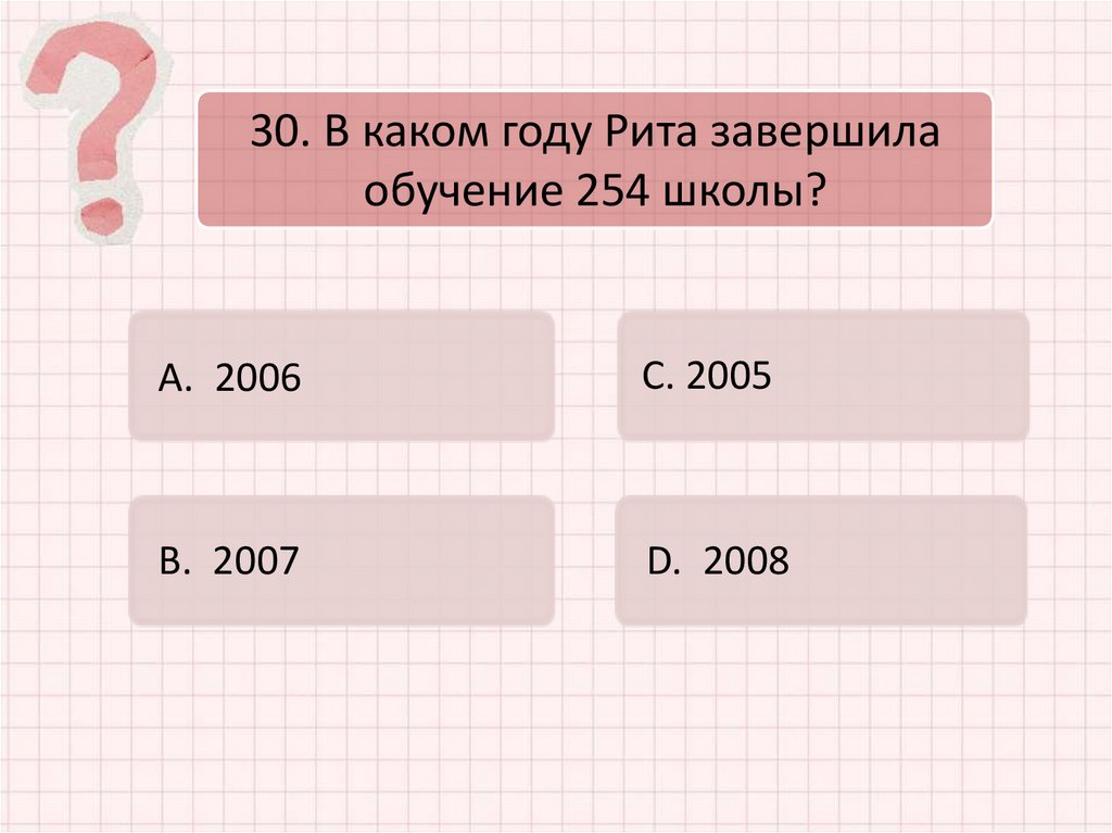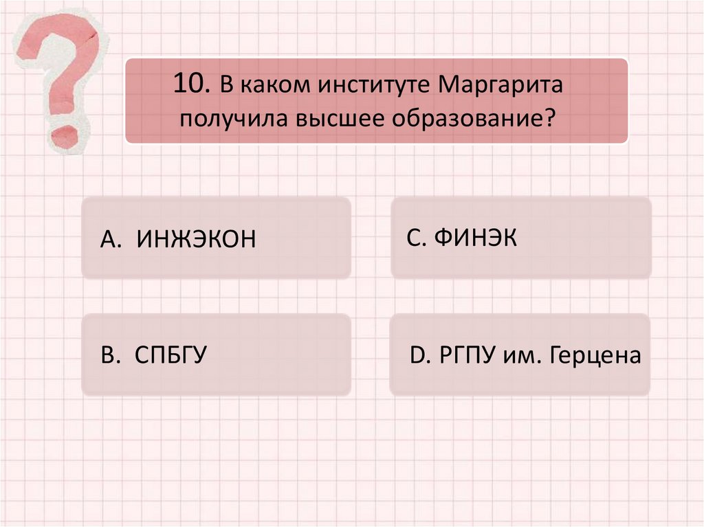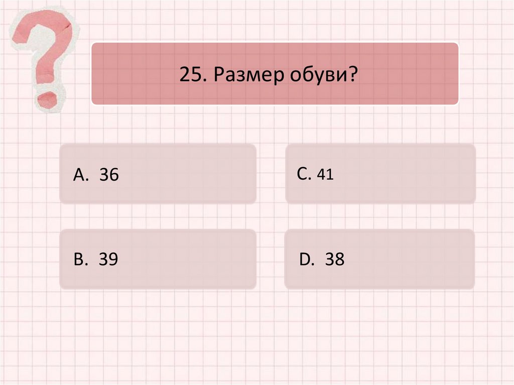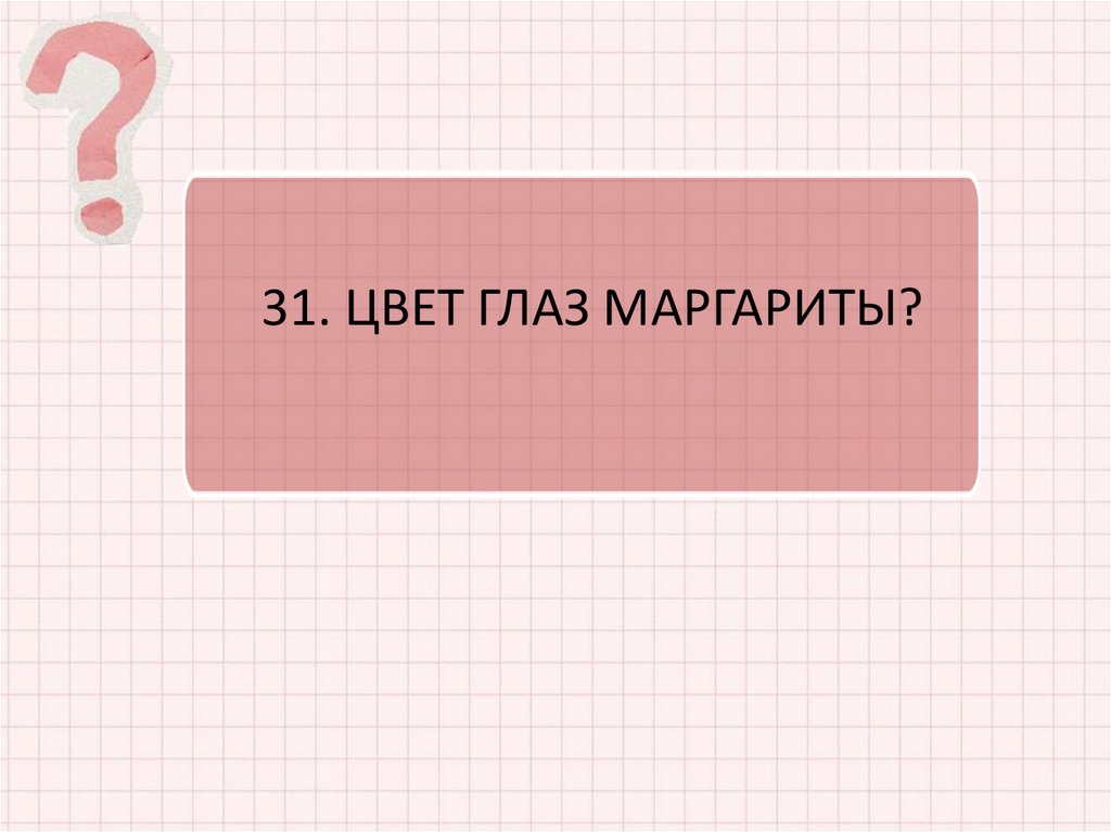 31. ЦВЕТ ГЛАЗ МАРГАРИТЫ?38.