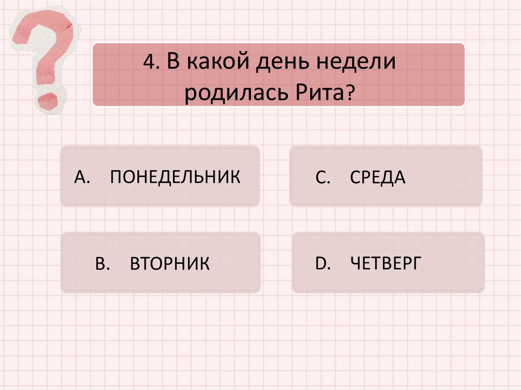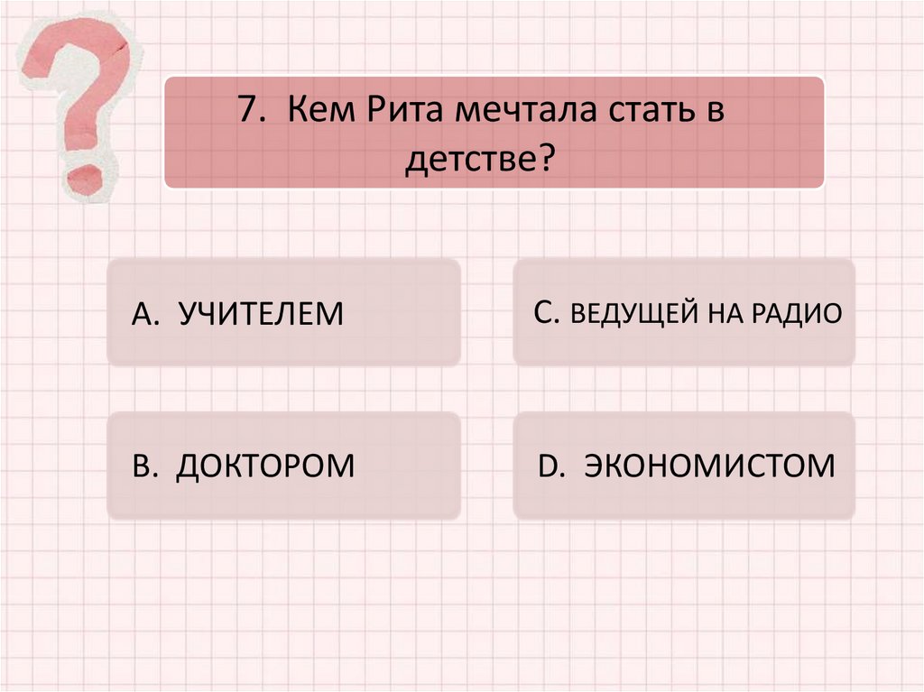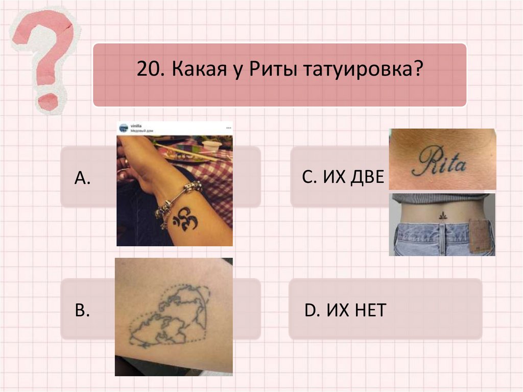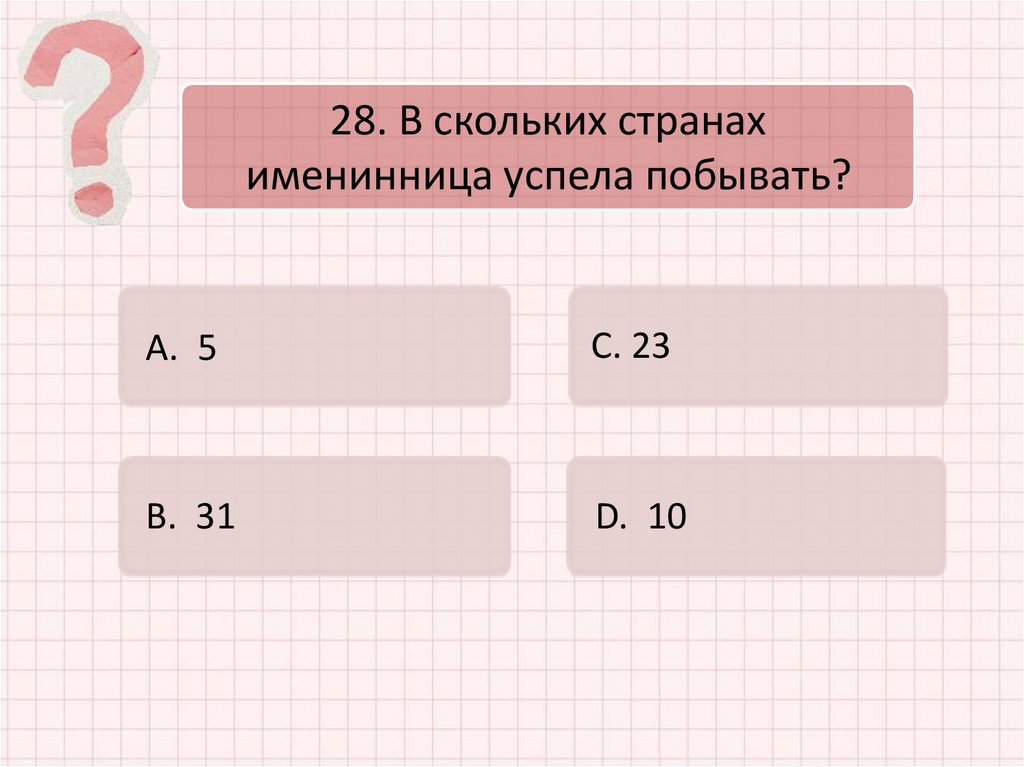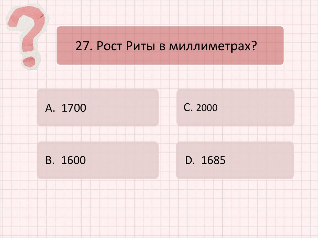 31. ЦВЕТ ГЛАЗ МАРГАРИТЫ?38.
