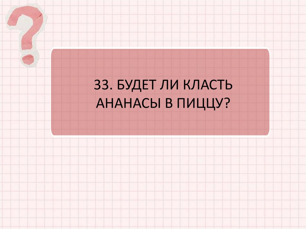 33. БУДЕТ ЛИ КЛАСТЬАНАНАСЫ В ПИЦЦУ?