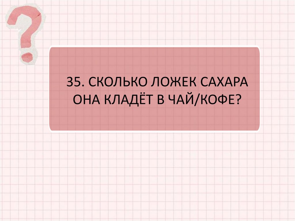 35. СКОЛЬКО ЛОЖЕК САХАРАОНА КЛАДЁТ В ЧАЙ/КОФЕ?