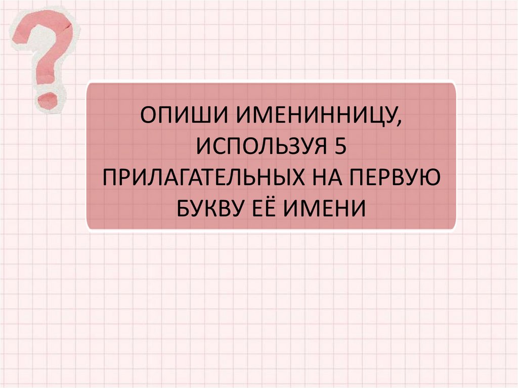 ОПИШИ ИМЕНИННИЦУ,ИСПОЛЬЗУЯ 5