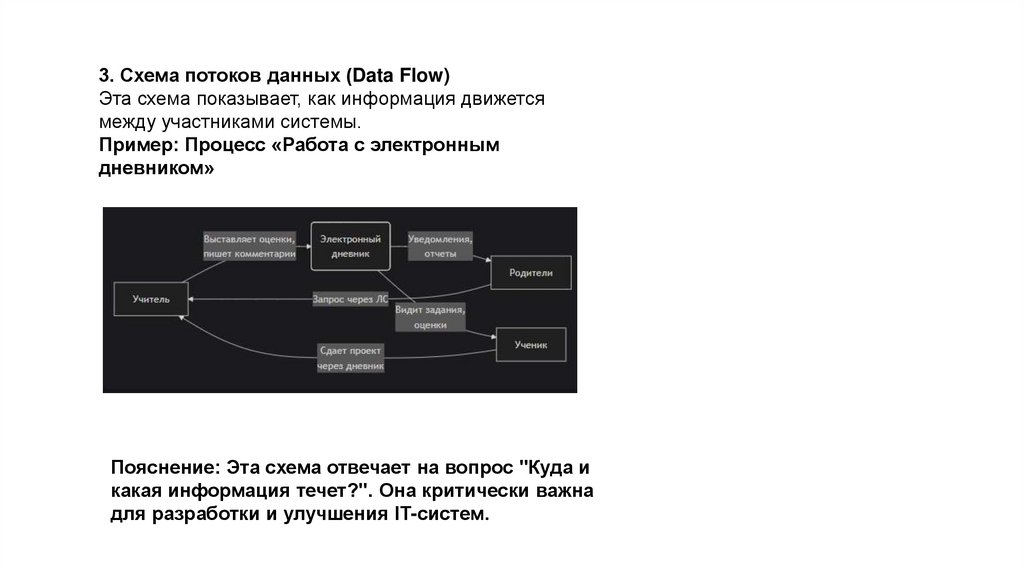 3. Схема потоков данных (Data Flow)Эта схема показывает, как информация движется