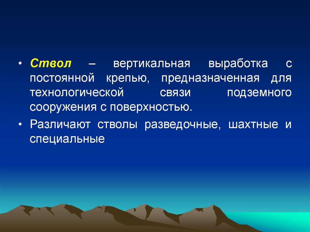 • Ствол – вертикальная выработка спостоянной крепью, предназначенная для