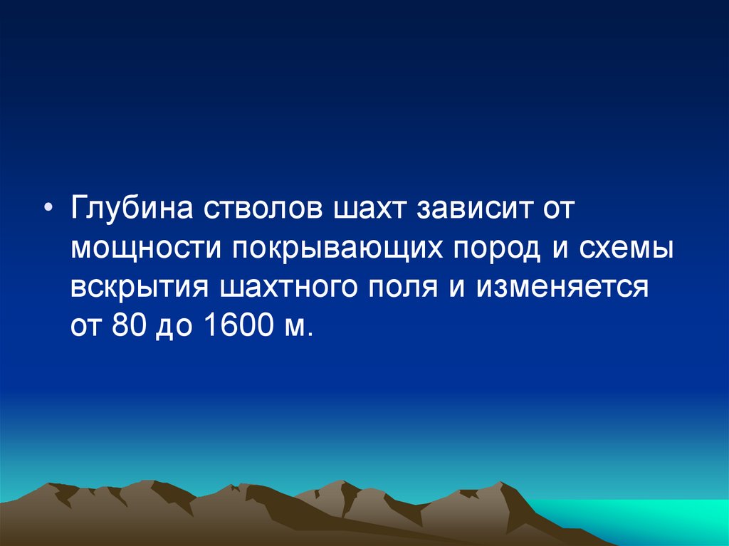 • Глубина стволов шахт зависит отмощности покрывающих пород и схемы