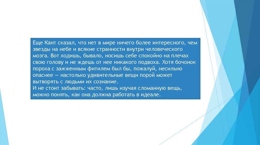 Еще Кант сказал, что нет в мире ничего более интересного, чемзвезды на небе и всякие странности внутри человеческого