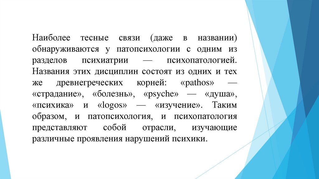 Наиболее тесные связи (даже в названии)обнаруживаются у патопсихологии с одним из