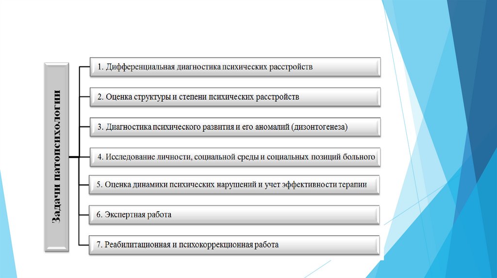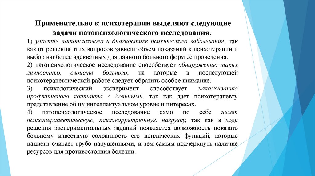 Применительно к психотерапии выделяют следующиезадачи патопсихологического исследования.