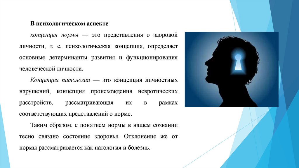 В психологическом аспектеконцепция нормы — это представления о здоровой