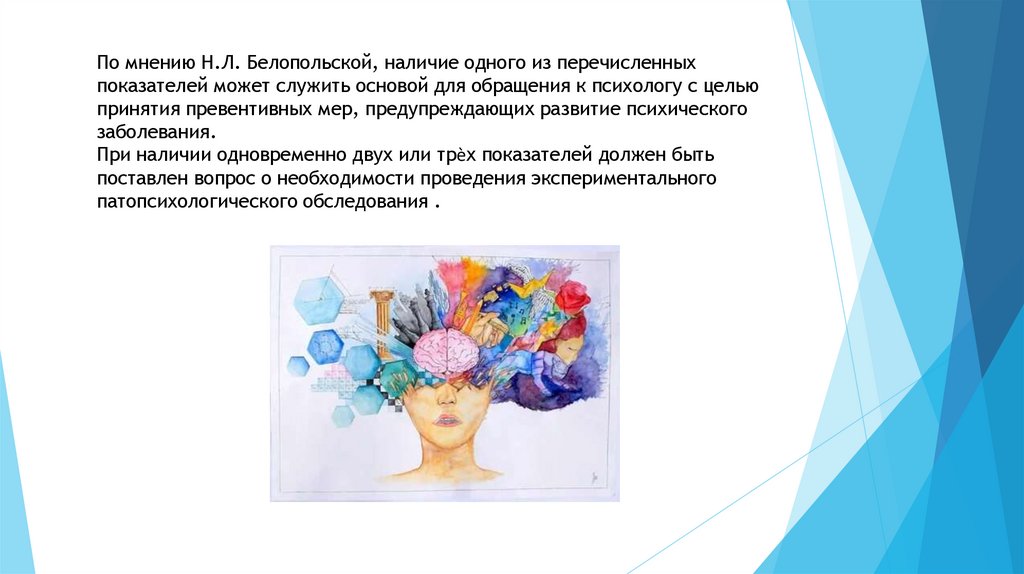 По мнению Н.Л. Белопольской, наличие одного из перечисленныхпоказателей может служить основой для обращения к психологу с целью