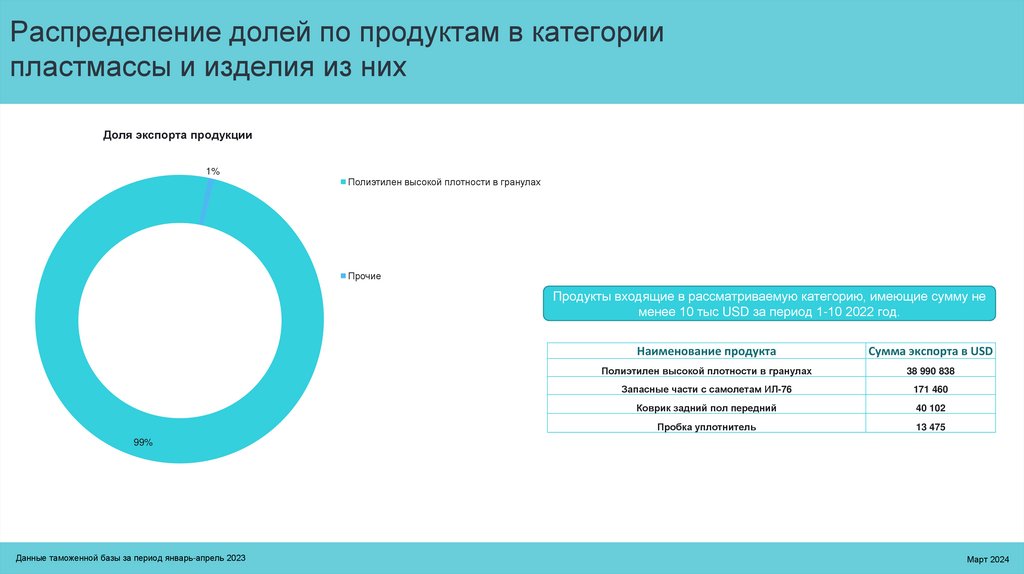 Распределение долей по продуктам в категориипластмассы и изделия из них