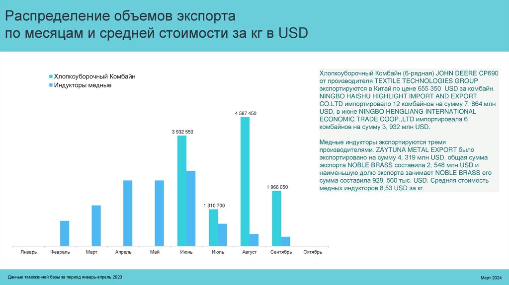 экспортируются в Китай по цене 655 350 USD за комбайн.