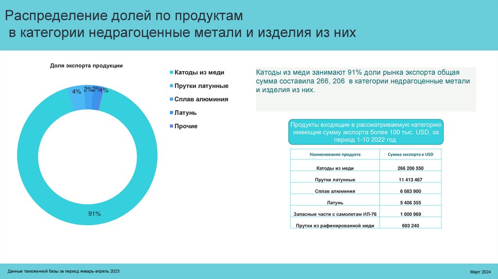 экспорта NOBLE BRASS составила 2, 548 млн USD и