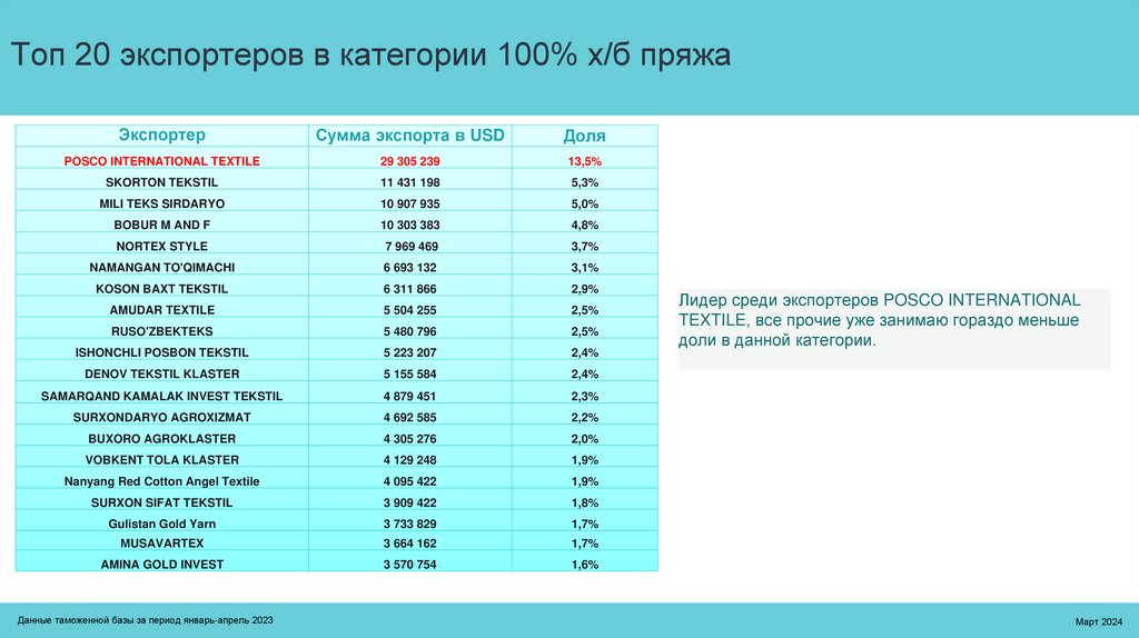 экспортировано на сумму 4, 319 млн USD, общая сумма