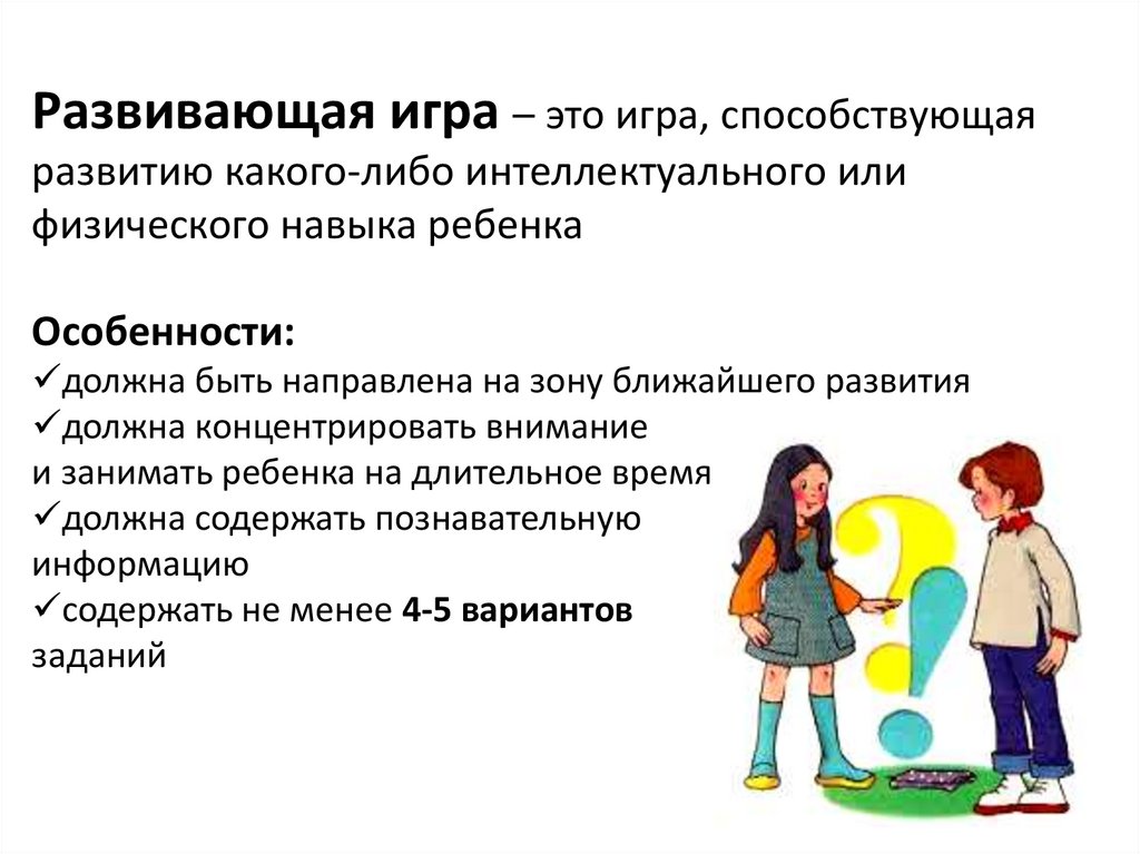 Развивающая игра – это игра, способствующаяразвитию какого-либо интеллектуального или