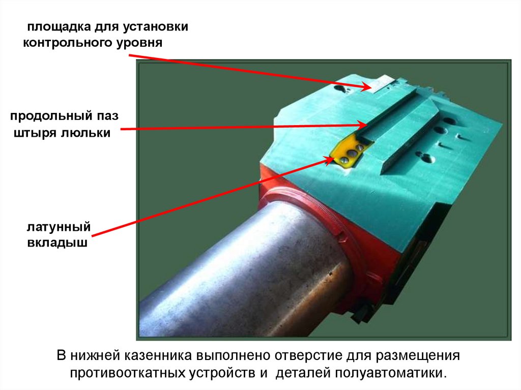 - прилив с отверстиями для крепления штоков противооткатных устройств;