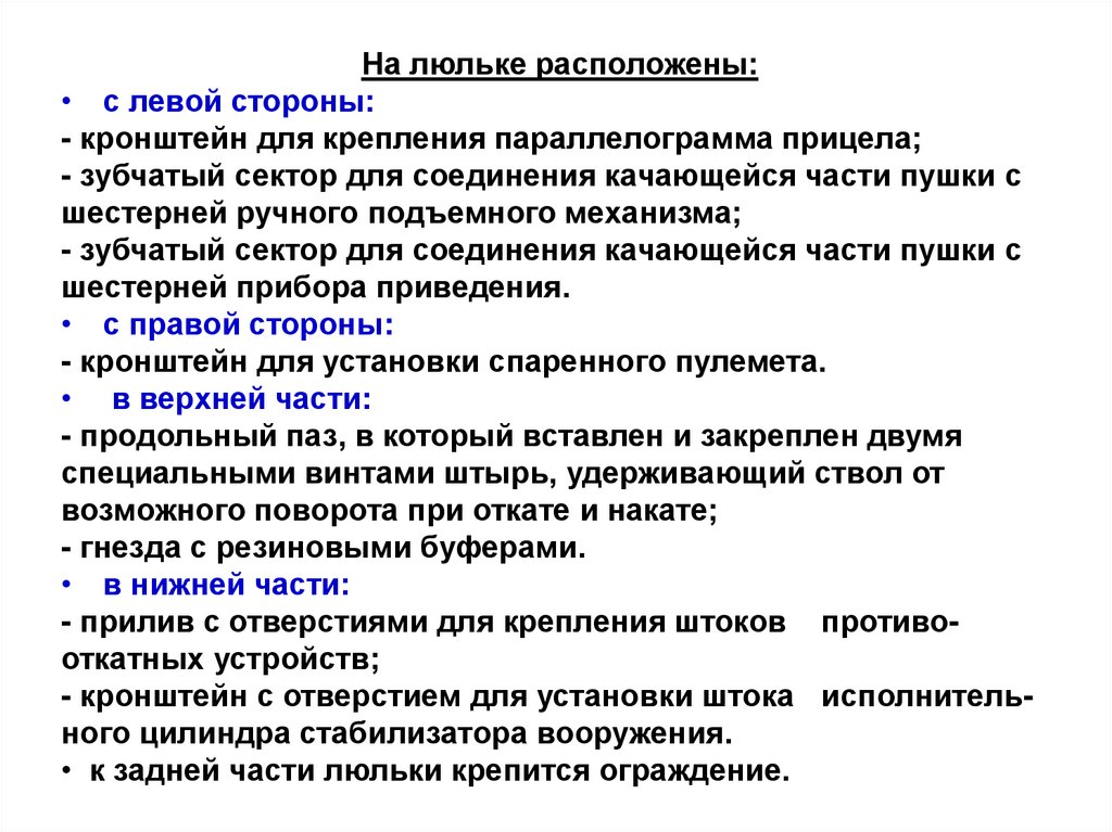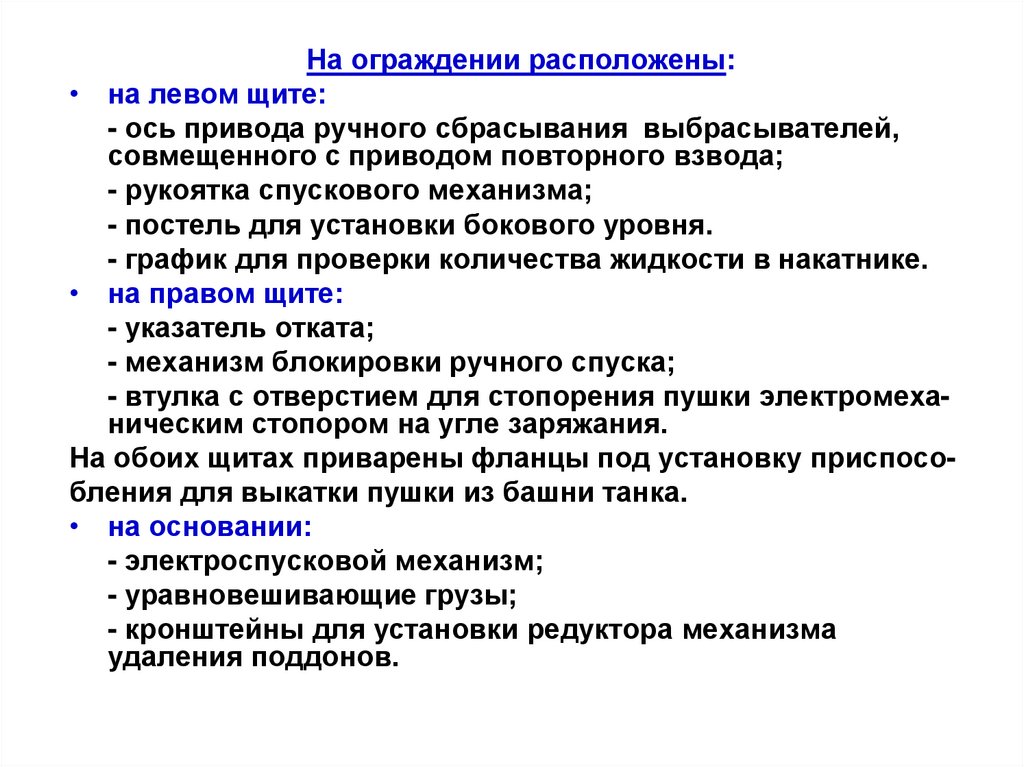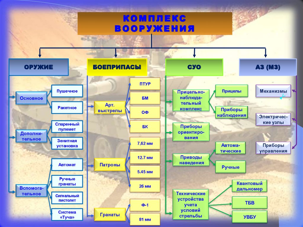механизмов и устройств пушки, а также приборов имеханизмов стабилизатора вооружения и автомата заряжания.