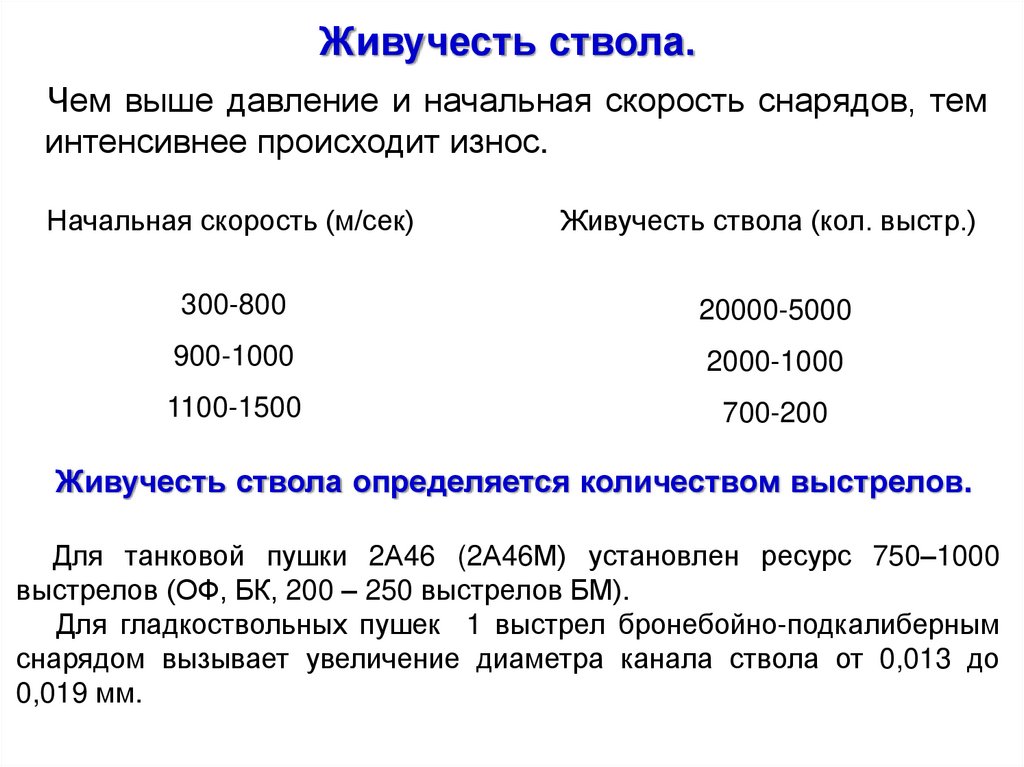 от 25% до 80%, удлинения зарядной каморы или износ ствола