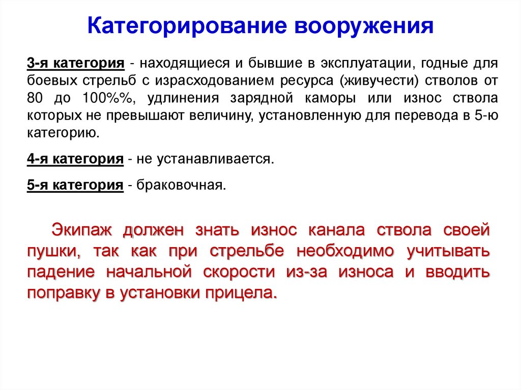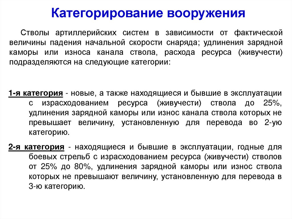Категорирование вооружения3-я категория - находящиеся и бывшие в эксплуатации, годные для