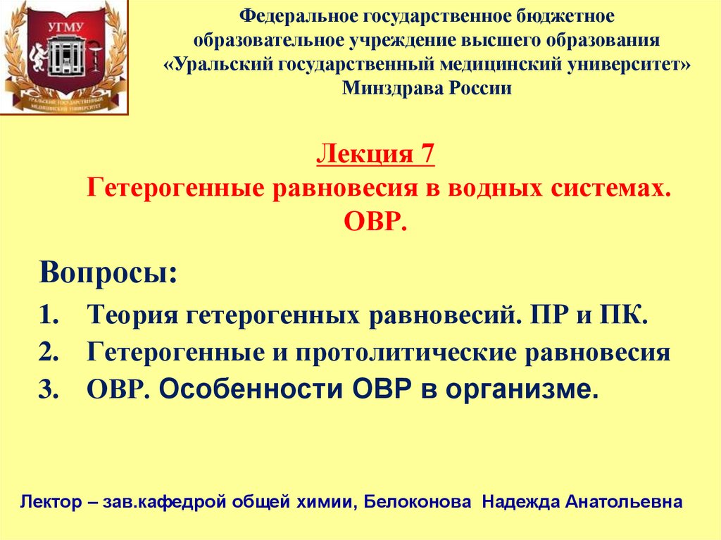 1. Лекция 7 Гетерогенные равновесия в водных системах. ОВР.