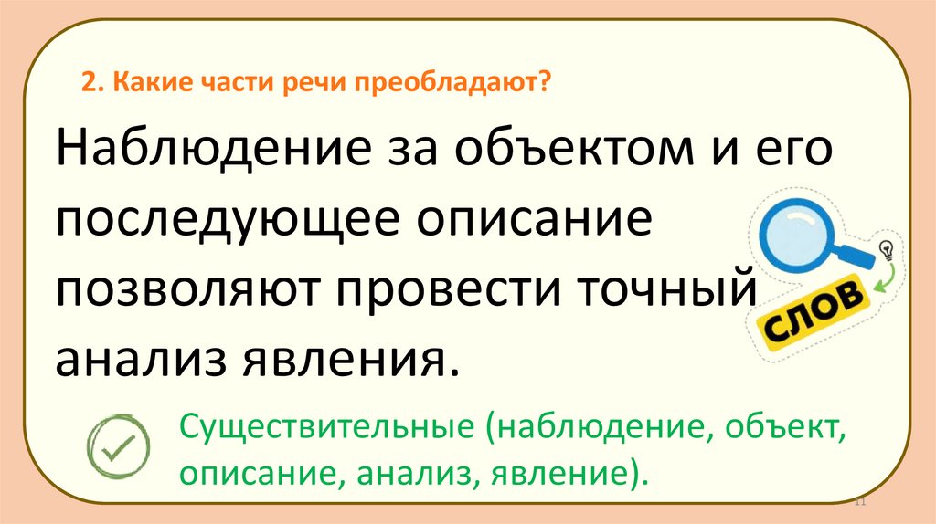 2. Какие части речи преобладают?Наблюдение за объектом и его