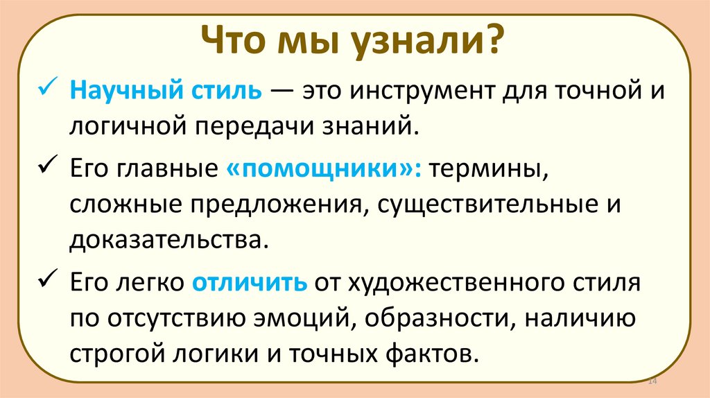 Что мы узнали?Научный стиль — это инструмент для точной и
