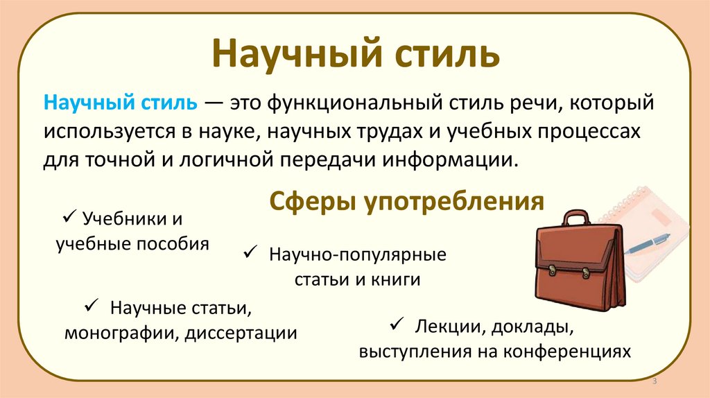 Научный стильНаучный стиль — это функциональный стиль речи, который