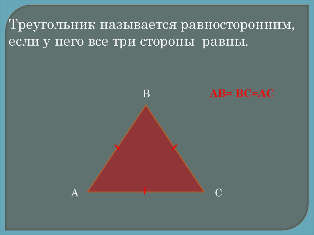 Треугольник называется равносторонним,если у него все три стороны равны.
