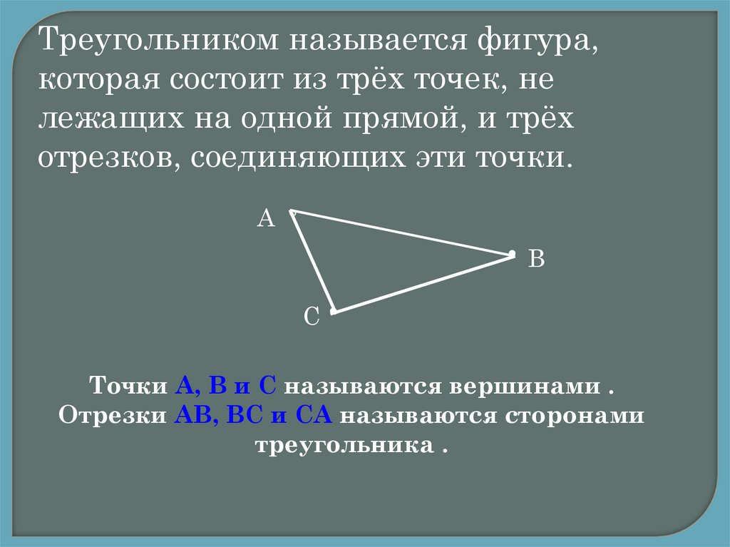 Треугольником называется фигура,которая состоит из трёх точек, не