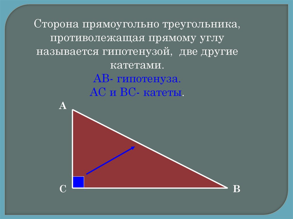 Сторона прямоугольно треугольника,противолежащая прямому углу