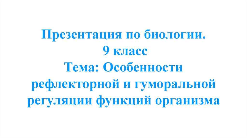 1. Презентация по биологии. 9 класс Тема: Особенности рефлекторной и гуморальной регуляции функций организма