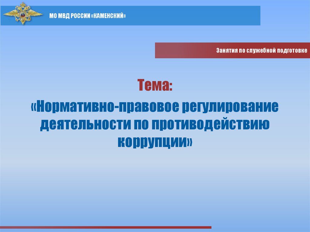 МО МВД РОССИИ «КАМЕНСКИЙ»Занятия по служебной подготовке